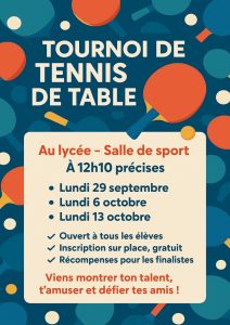 Tournoi de Tennis de Table – Venez relever le défi !