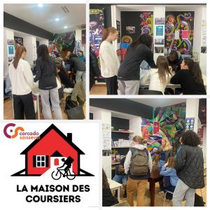 Lors de cette première visite, nos élèves sont venus à la rencontre des acteurs de terrain, ont découvert le fonctionnement de l’association et ont distribué des questionnaires en vue de concevoir de futures actions d’éducation à la santé adaptées aux besoins des coursiers.